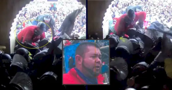 Certaines des pires violences survenues le 6 janvier se sont produites à l’intérieur de ce tunnel, où les agents ont été forcés de se faufiler dans le couloir étroit, épaule contre épaule et dos à dos pour bloquer l’entrée. Ils ont été bombardés de projectiles volants lancés par la foule, frappés avec des armes, aspergés de produits irritants et ont souvent subi coup après coup par des émeutiers qui escaladaient puis surfaient sur la foule pour se frayer un chemin à l'intérieur du tunnel aussi loin qu'ils pouvaient.